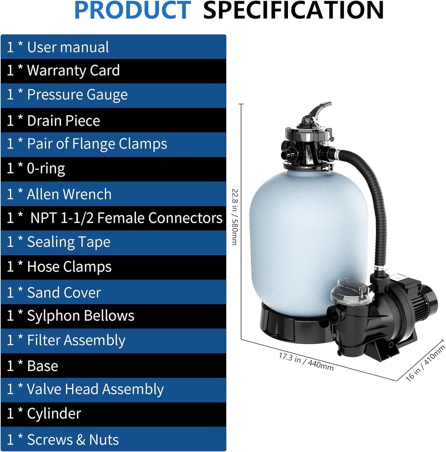Enhanced Durability: Boasting a 44 lb sand capacity, this sand pump and filter ensures long-lasting, efficient filtration, reducing the need for frequent maintenance.