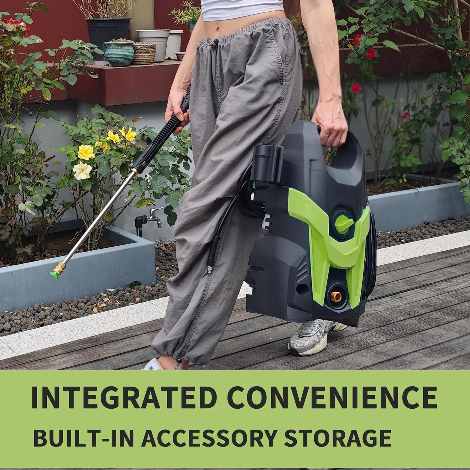 UPGRADED TOUCHSCREEN INTERFACE: Features 8 pressure levels controlled by a user-friendly touch screen, Pressure adjusted from 2500PSI to 5000PSI; includes soap bottle and 4 nozzles for versatile cleaning.