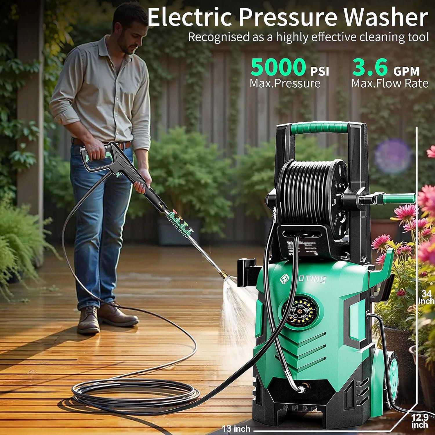 Unleash 5000 PSI Power: Tackle tough grime on driveways, decks, siding, vehicles, and outdoor equipment with maximum cleaning force at 3.6 GPM.