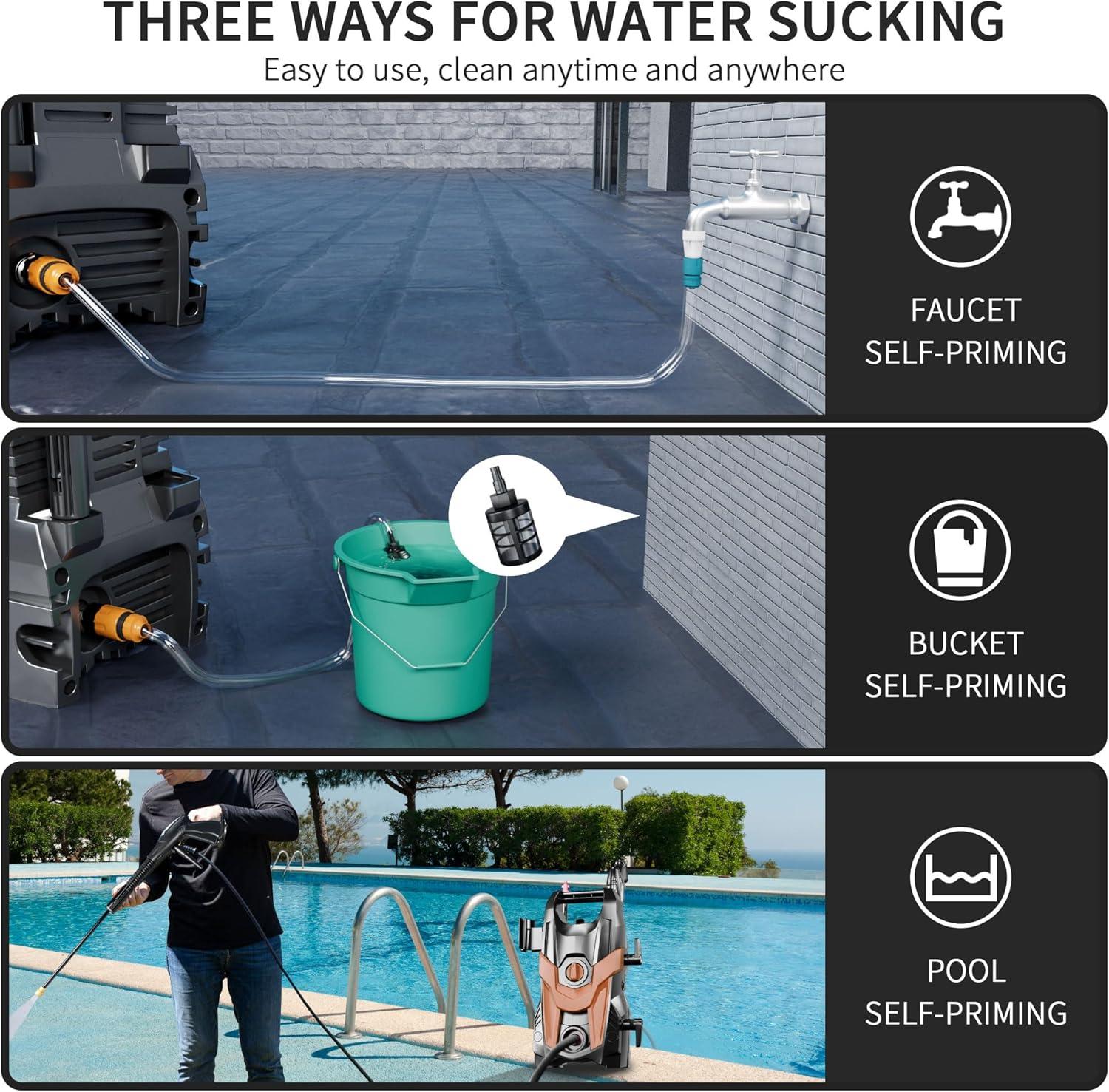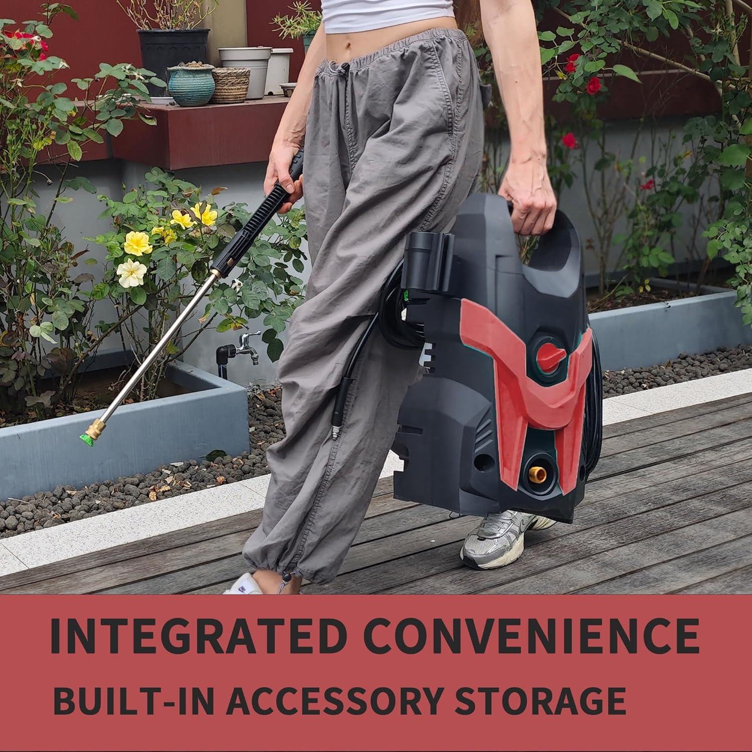【SAVING WATER & SAFETY】The Electric Pressure Washer using high-pressure water flow to clean up the dirt, is currently recognized as the world's most scientific, economical and environmentally friendly cleaning methods.While conserving water resources, it can also save you time and effort