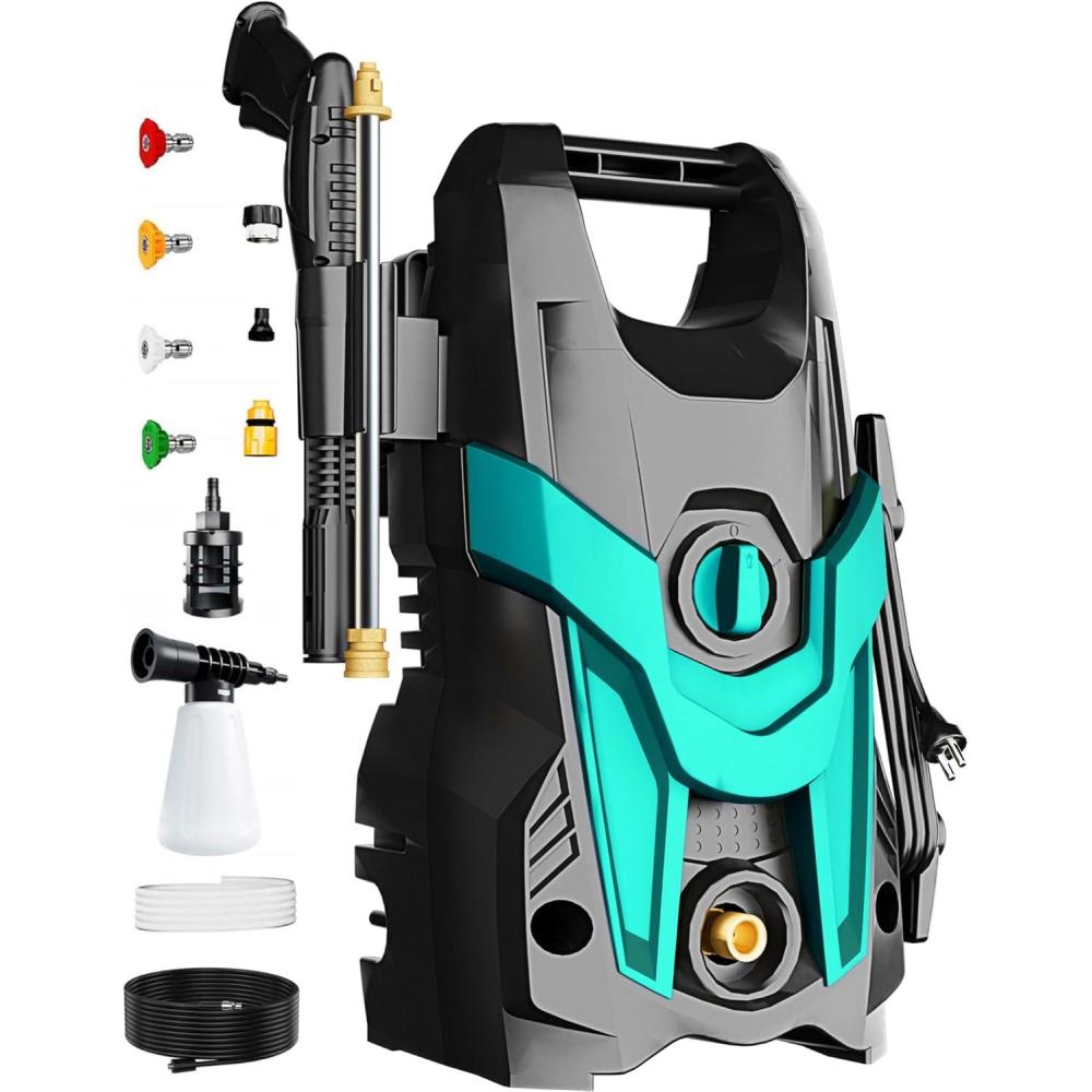 【SAVING WATER & SAFETY】The Electric Pressure Washer using high-pressure water flow to clean up the dirt, is currently recognized as the world's most scientific, economical and environmentally friendly cleaning methods.While conserving water resources, it can also save you time and effort