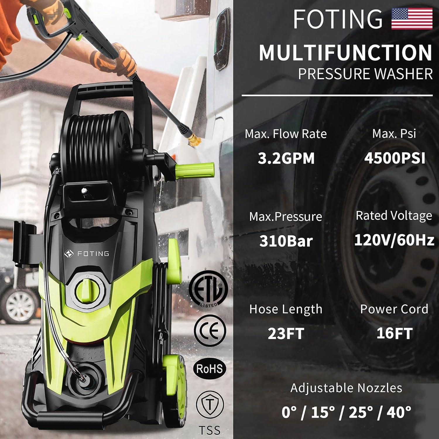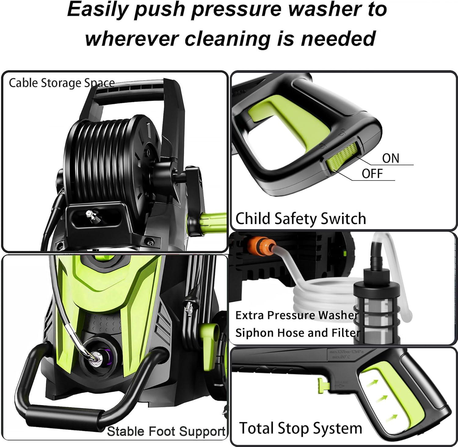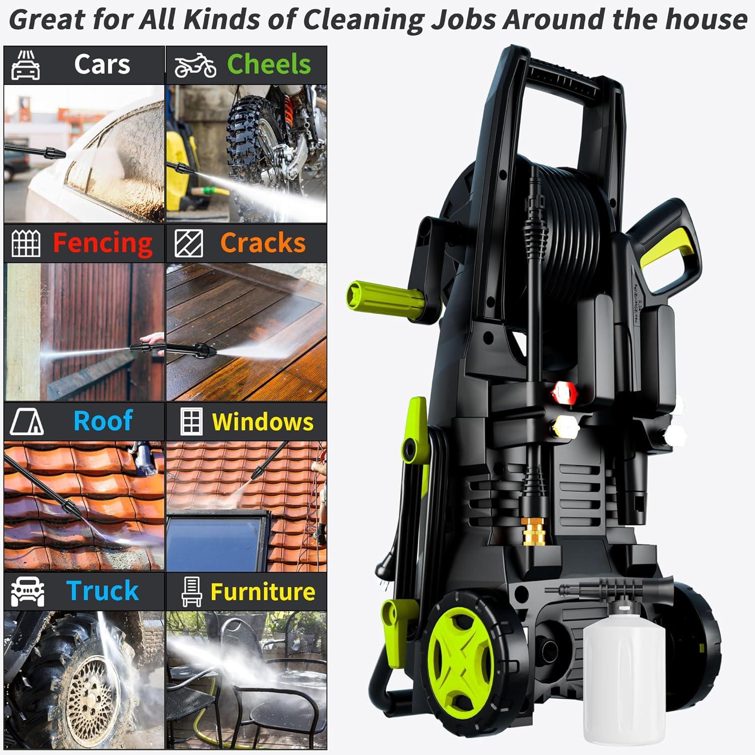 Pressure Washer,Power Washer with 4 Quick Connect Nozzles, Inlet Hose & Filter&Foam